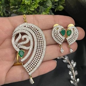 The necklace features a beautifully structured design that sits gracefully along the neckline, creating a harmonious blend of traditional charm and modern finesse. Its statement pendant adds depth and dimension, making it the perfect focal point for festive occasions, weddings, and grand celebrations. The matching earrings mirror the same intricate detailing, completing the set with balance and luxurious symmetry.